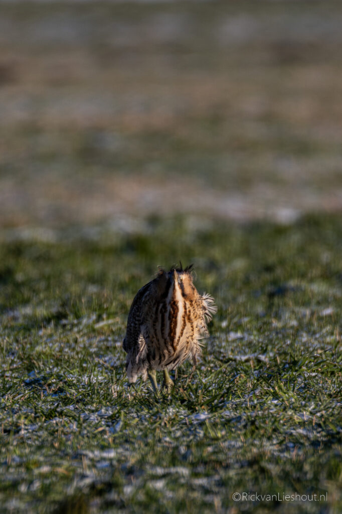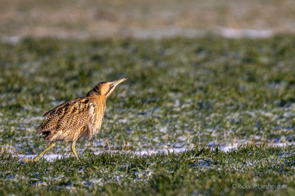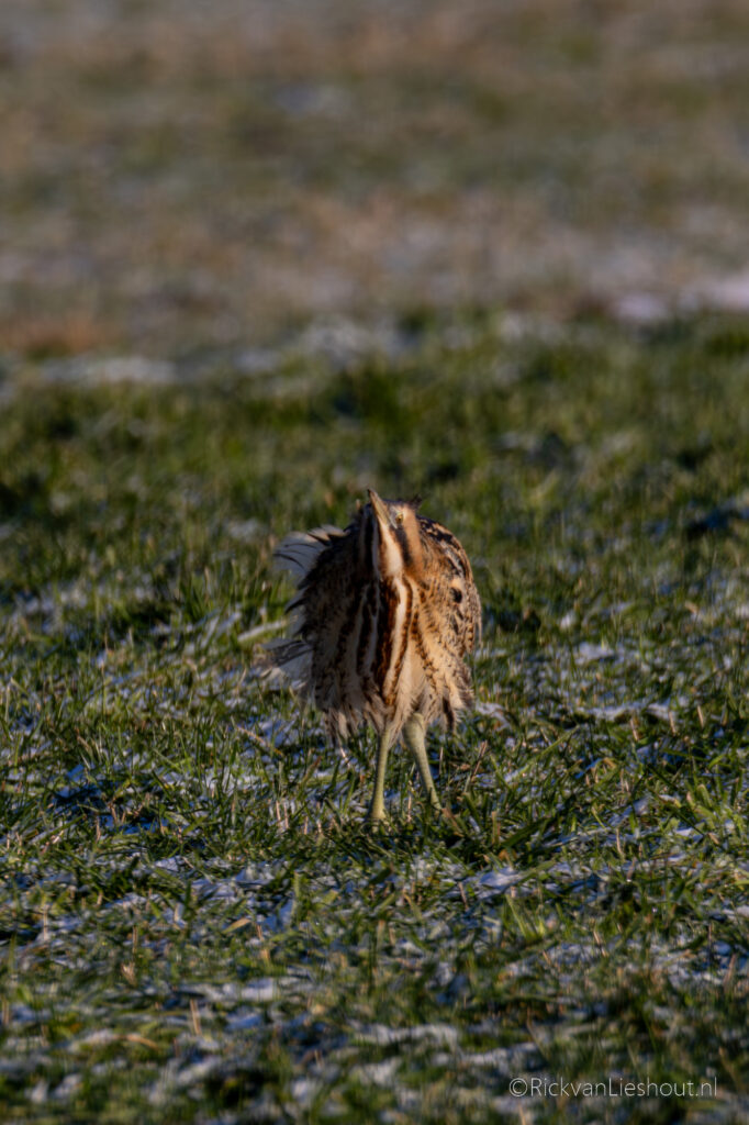 Along with quite a few other birdwatchers, it was calmly foraging in the meadow. Because of the frost, there is little food to be found in the reeds, forcing the well-camouflaged bird to look elsewhere for its lunch. It was amusing to see that the bird still seemed to think it was well hidden. Although I have heard the Eurasian bittern several times before, this was the first time I had ever seen one. A magnificent creature!